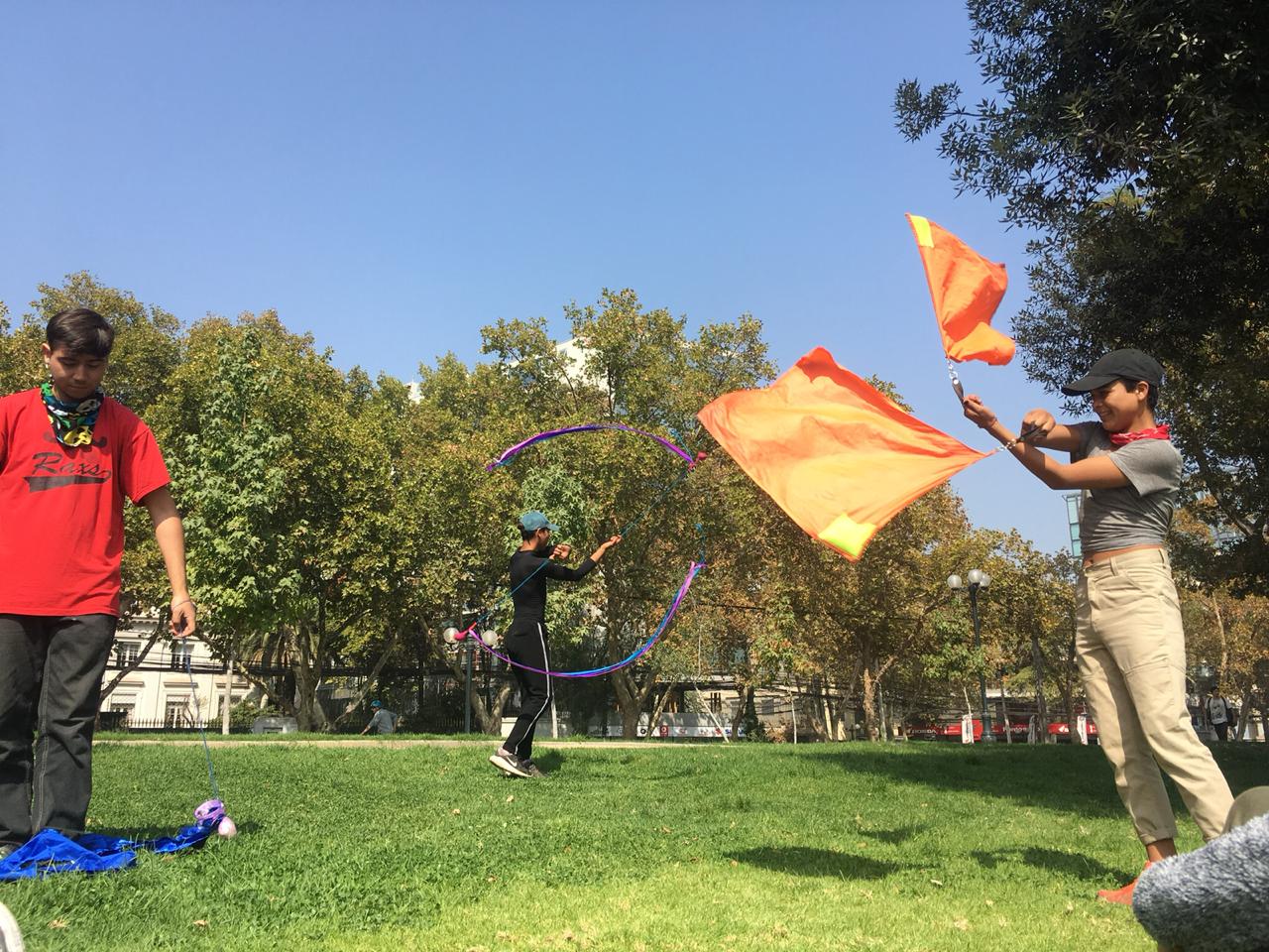 Gracias a Santiago, un joven docente en formación que nos colabora semanalmente y que domina este arte, ha sido posible brindar a los chicos en pequeños grupos las técnicas para la confección , manipulación y realización de malabares con diferentes instrumentos.